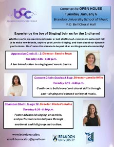 Brandon University now requires all choristers to register online or drop off this registration form at the BU School of Music office. The Conservatory Administration would appreciate all returning choristers to register by July 1, 2025.