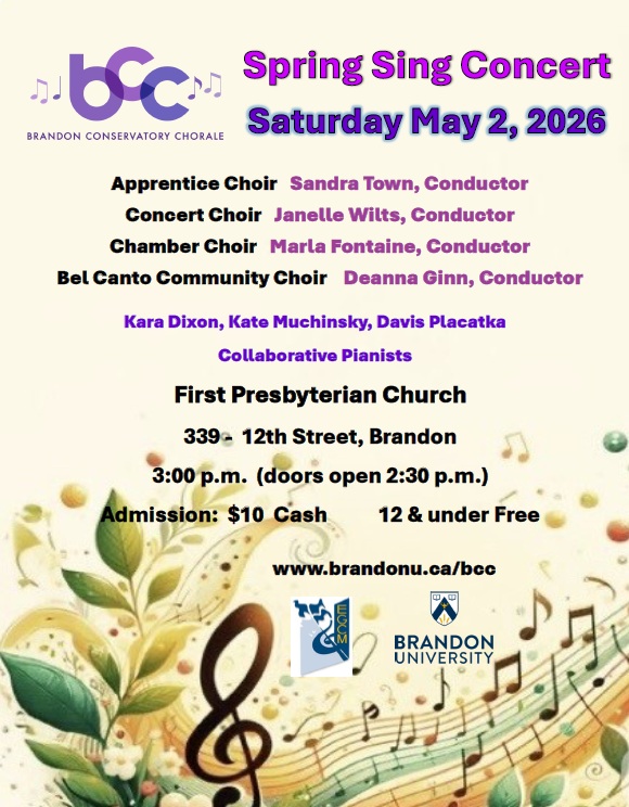 The Brandon Conservatory Chorale welcomes people of all ages to have fun making music with us. Our choirs offer a unique opportunity to develop skills that will last a lifetime.