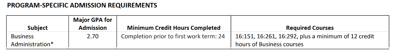 Note: Business Administration students who transfer in block credit transfers containing more than three credit hours of co-op courses are not eligible to receive further co-op credit towards completing their degree.