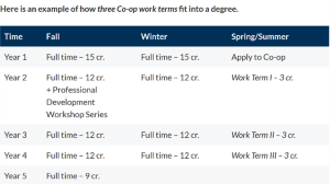 The co-op program is available for students enrolled in the 4-year and 4-year (Honours) degrees. The typic application and schedule for co-op education programs are as follows.