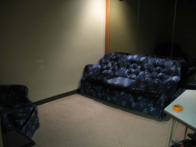 | lighting, sound | no window, overhead lighting, control at door, acoustical tiles on ceiling and walls |