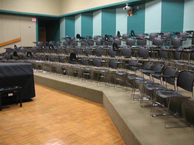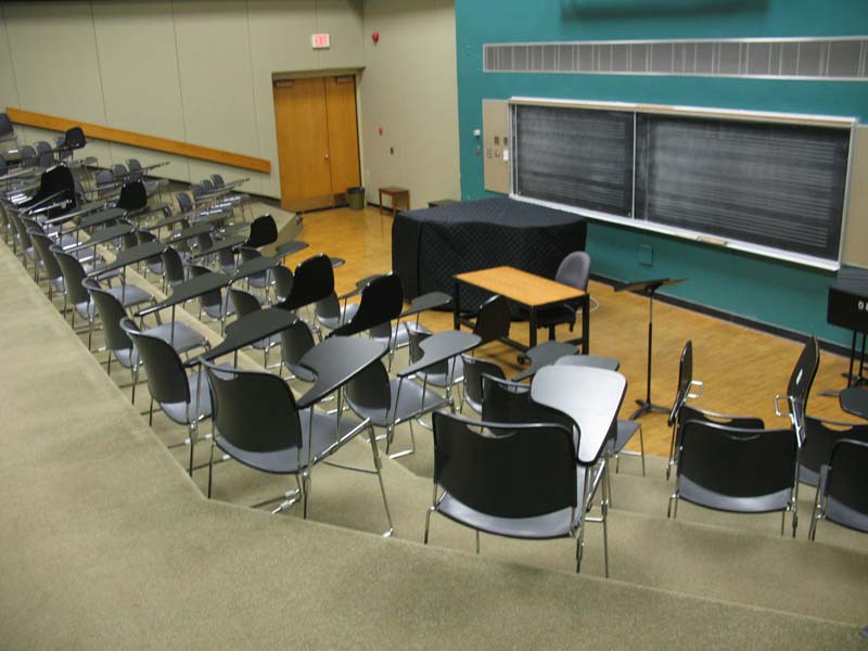 | furniture | 207 audience seats, 1 large table, 31 chairs, 1 stool, 1 office chair,13 music stands |