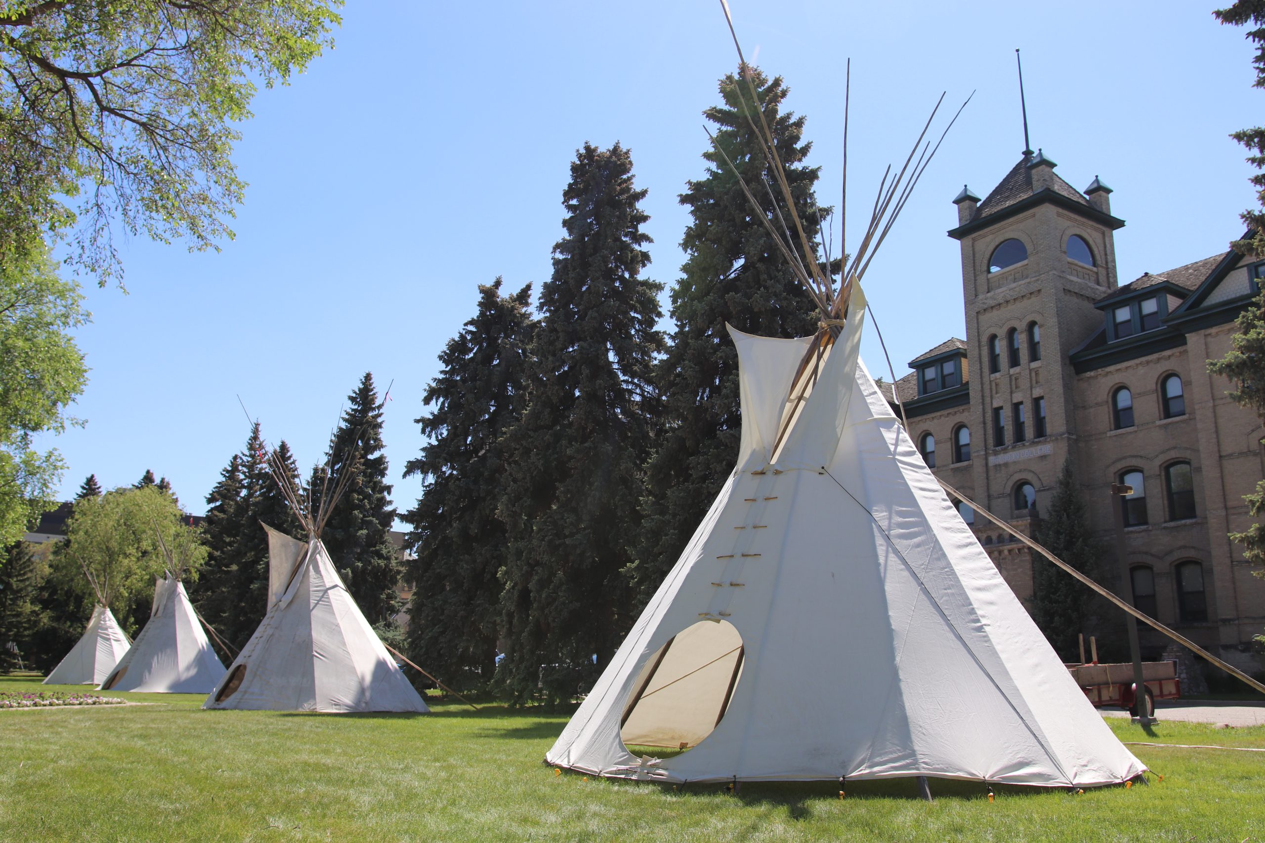 Traditional tipis are put up throughout May to October of each year to commemorate and celebrate events on campus such as Convocation, National Indigenous Peoples’ Day, new student orientation, and Truth & Reconciliation Week.